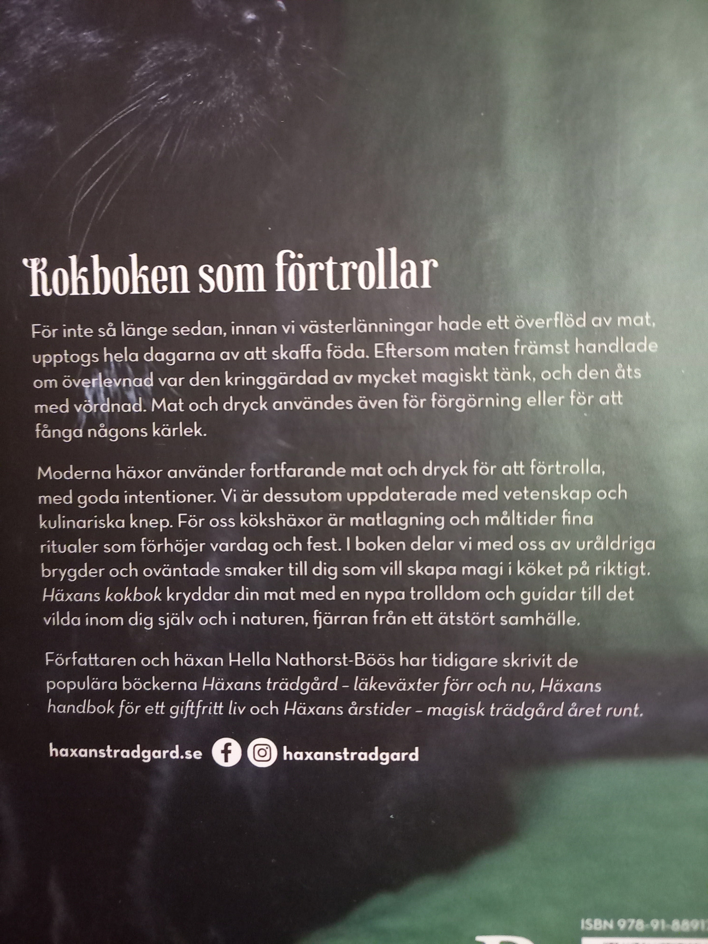 mat och magi. Hon har tidigare skrivit tre Häxan-böcker; Häxans trädgård, Häxans handbok och Häxans årstider.