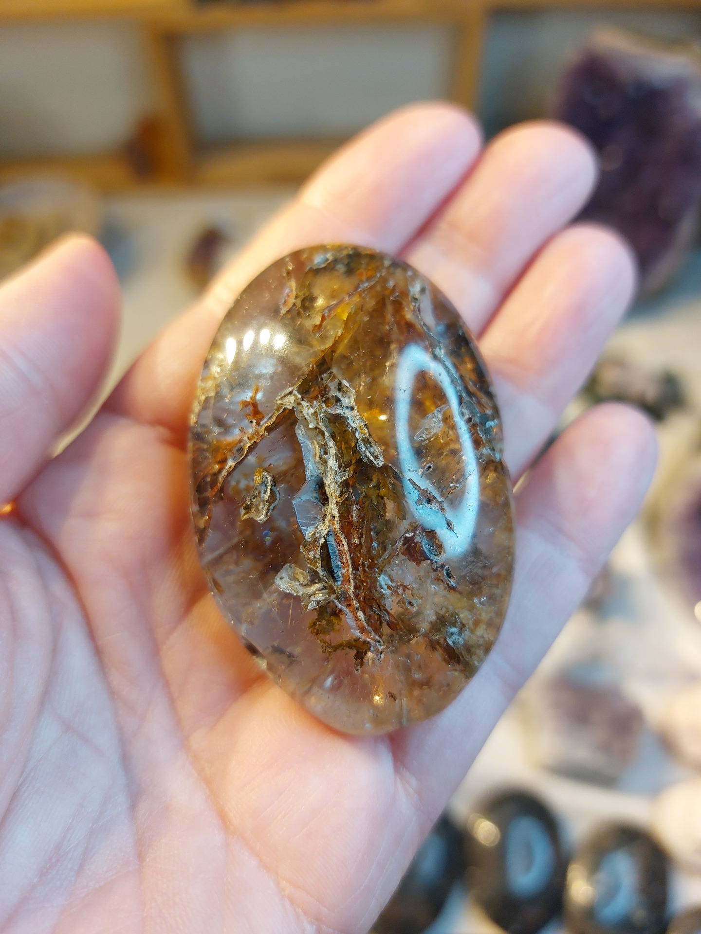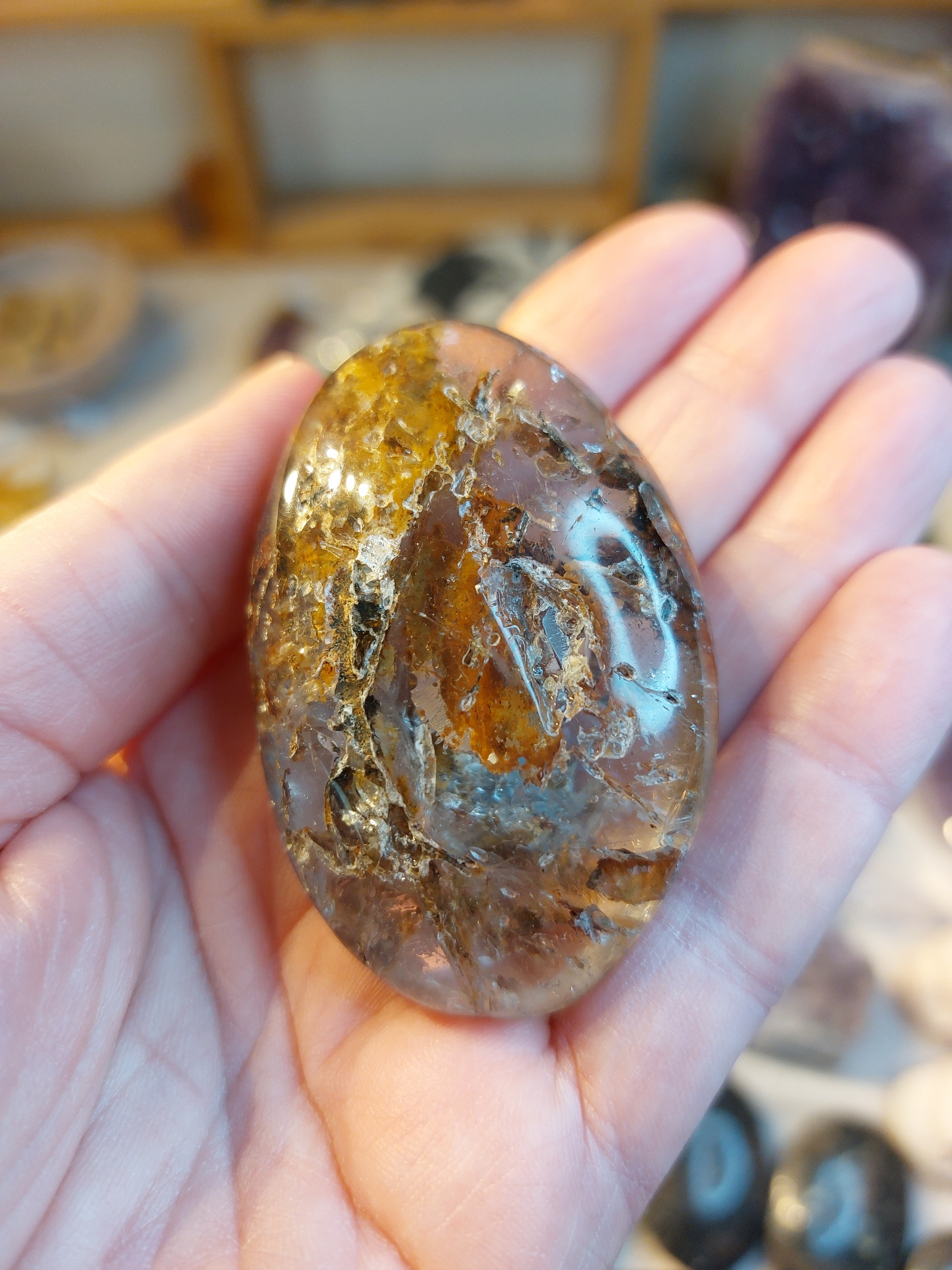 Handsten bergkristall med hematitinklusioner nr 1