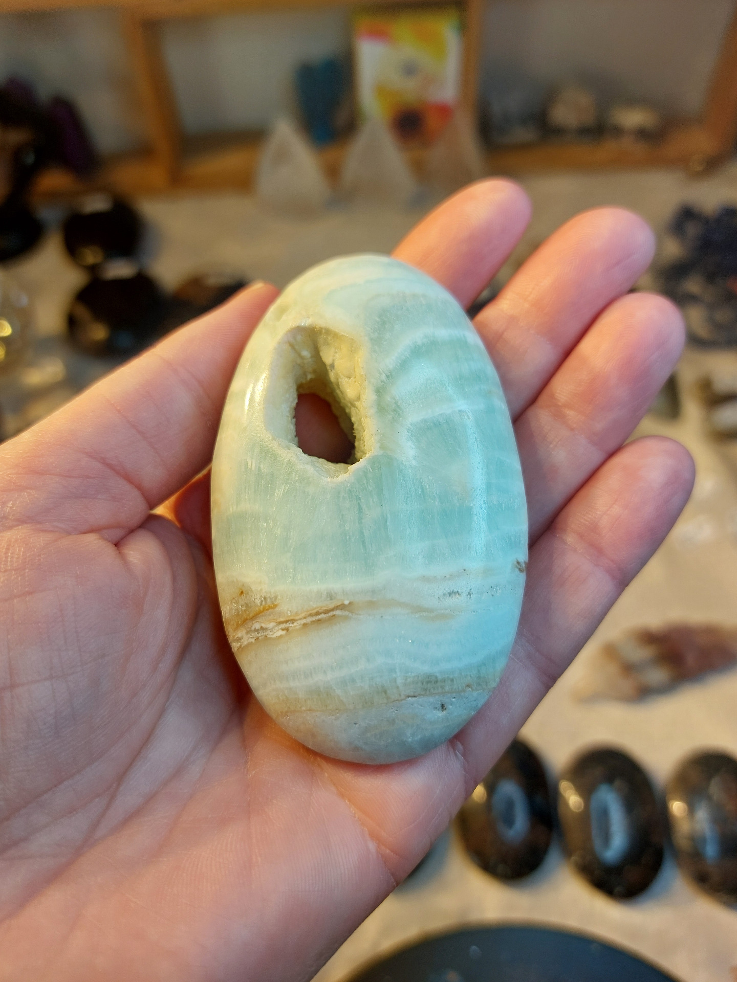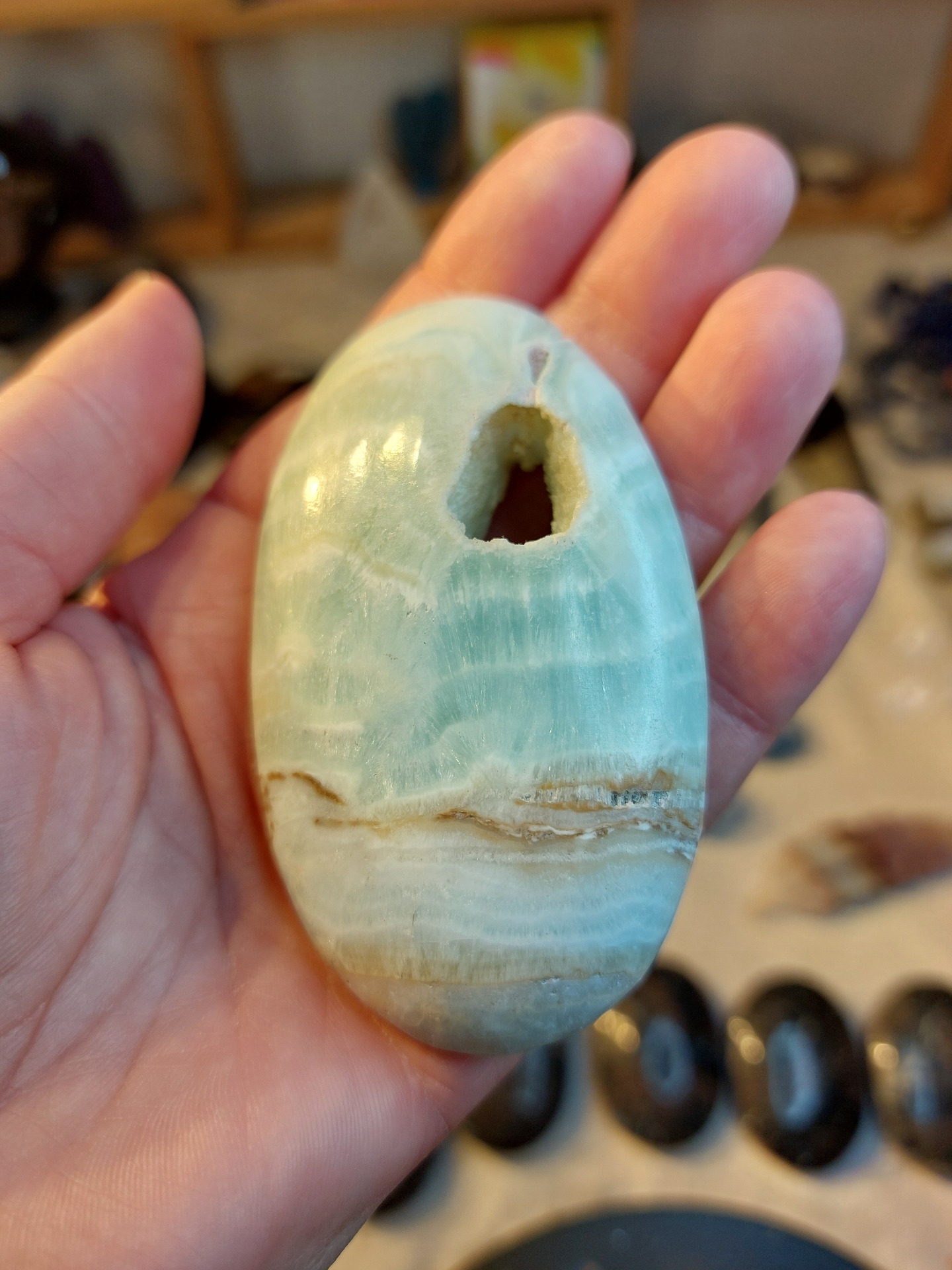 Handsten blå karibisk kalcit med aragonit nr 1