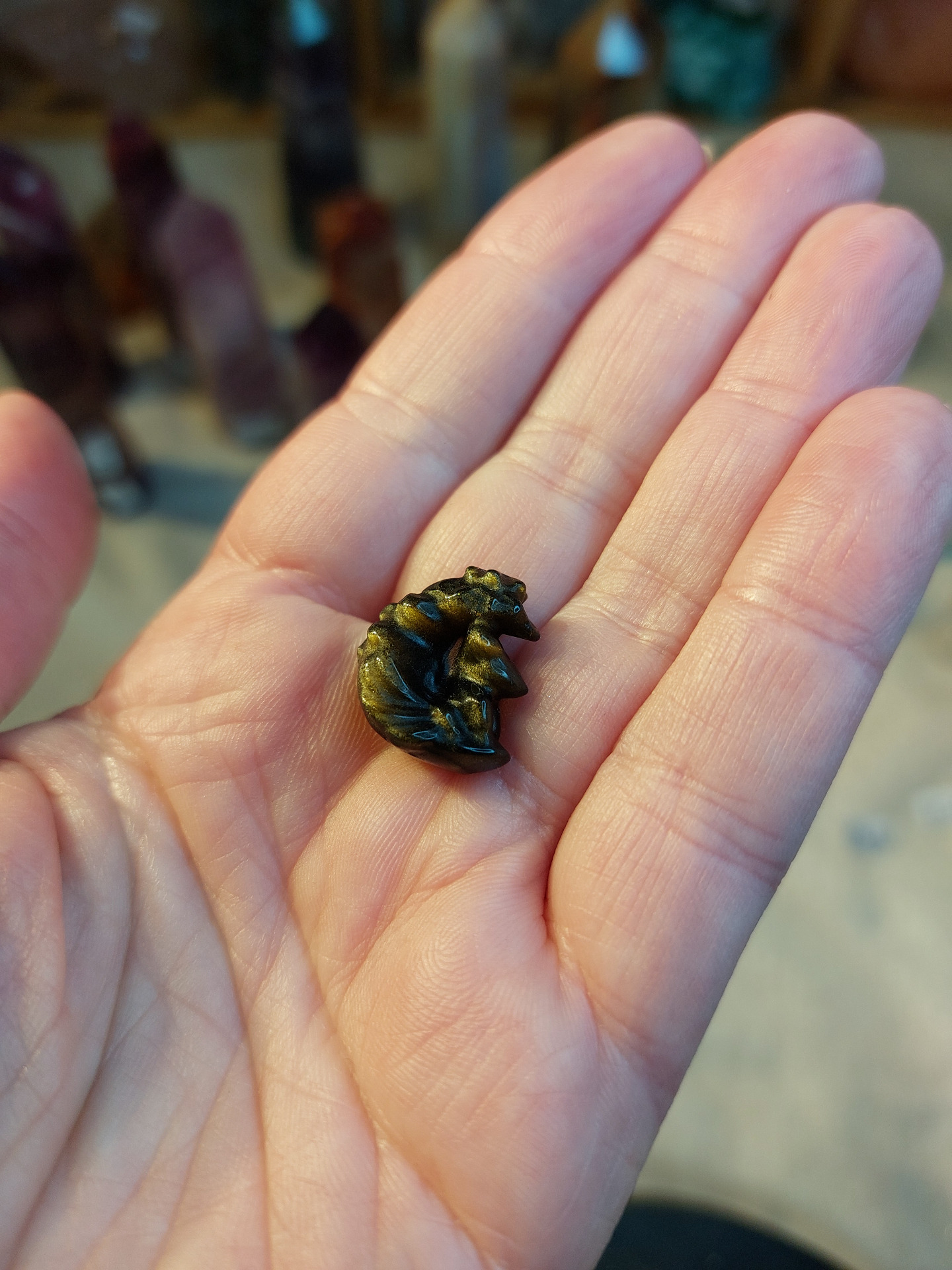 Minicarving ekorre på måne guldobsidian nr 1